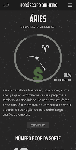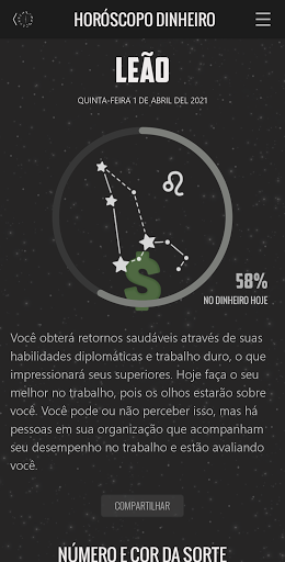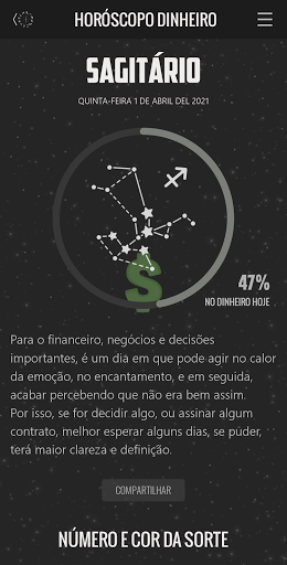- Possibilidade de compartilhar seu Horóscopo do Dinheiro em suas redes sociais.