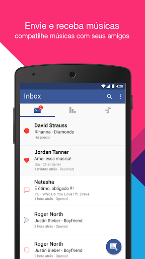 • Envie músicas para qualquer pessoas nos seus contatos e vice-versa