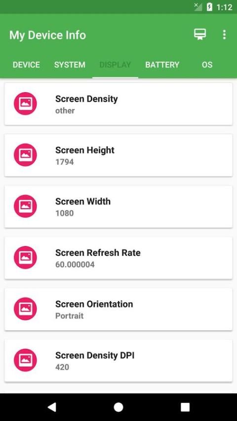 : Screen Density, Screen Height, Screen Width, Screen Refresh Rate, Screen Density DPI