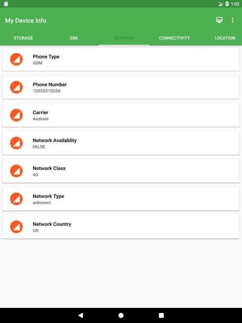 : Phone Number, SIM Operator, SIM Serial, SIM Country, SIM Network Type, SIM Lock Status.