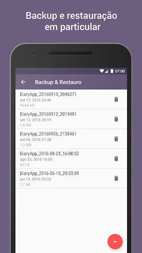 Ele funciona completamente offline e todas as entradas do diário são armazenadas apenas no seu dispositivo. Você pode ter 100% de certeza de que ninguém jamais lerá seu diário.