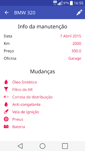 1 . Com MyGarage você vai saber quando você tem que mudar as peças do seu veículo.