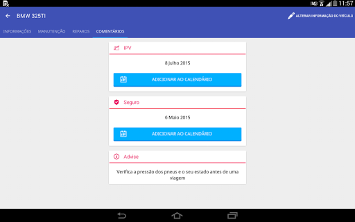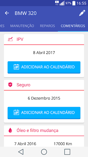 • Ter à mão as próximas revisões do carro e adicioná-los ao seu calendário pessoal, para que você não esquece-los.