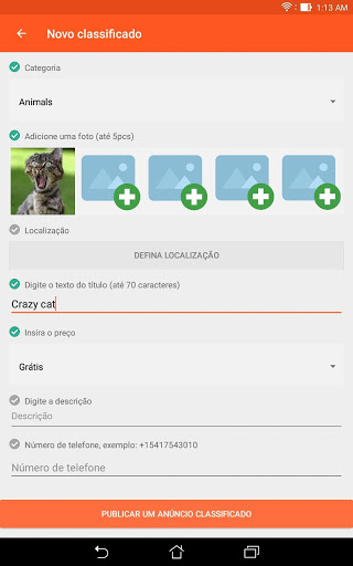 O aplicativo permite que você publique anúncios em menos de um minuto!