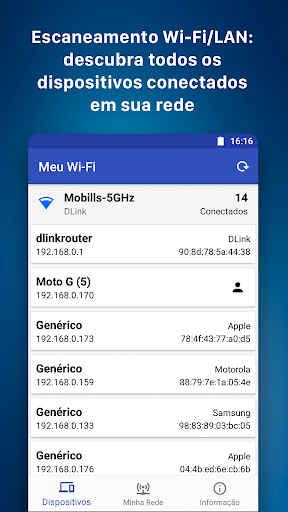 Meu Wi-Fi é uma ferramenta simples para saber informações de todos os dispositivos conectados (Vídeo-games, SmartTvs, PCs, Smartphones, etc ...), dando dados relevantes como endereço IP, fabricante, nome do dispositivo e o endereço MAC.