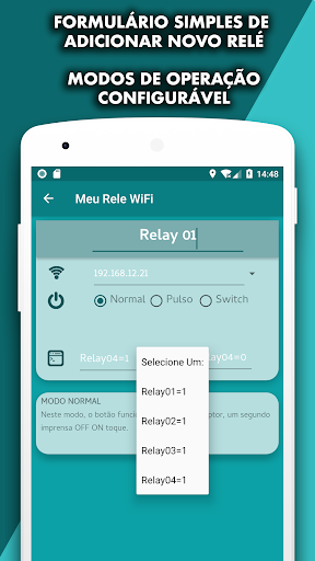 O aplicativo também recebe feedback dos relés, posicionando atomicamente ON / OFF.