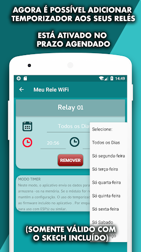 Agora é possível adicionar temporizadores independentes aos seus relés. Defina o dia, o tempo de ativação e desativação e seu relé será ativado no horário agendado.
