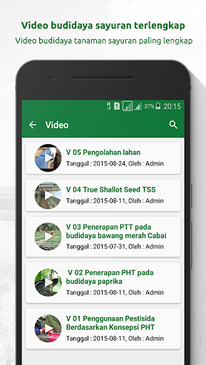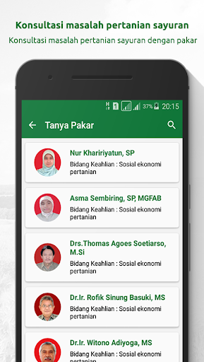 Esta aplicação tem como objetivo facilitar os agricultores em Aumentar a produção de produção vegetal usando o conceito PHT (controle integrado de pragas) Nesta aplicação, há informações sobre o tipo de doença de praga em plantas vegetais e a prevenção usando o banco de dados de pesticidas apropriado que foi desenvolvido pelo livro P Anduan pesticidas do Ministério da Agricultura da República da Indonésia. Além disso, os agricultores podem descobrir informações sobre o preço das commodities no mercado com base no local onde ele está localizado, portanto, os agricultores podem vender o preço de sua mercadoria vegetal adequadamente não trapache novamente por intermediários. Há uma pergunta e resposta entre os agricultores com culturas vegetais de Balitsa (centro de pesquisa vegetal) sob os auspícios do Ministério da Agricultura, em relação à informação de cultivo vegetal. Disponibilidade de vídeos de cultivo vegetal para os agricultores aprenderem independentemente a aplicação do cultivo vegetal. Esta aplicação foi baixada por 10 mil agricultores vegetais na Indonésia, a maioria dos usuários vêm do West Java, Enrekang Sul Sulawesi, mesmo de estrangeiros, como a vizinha Malásia também baixou este aplicativo, esta aplicação recebe um patrocinador da Universidade Holandesa Wageningen e tem publicado em periódicos agrícolas na Europa.