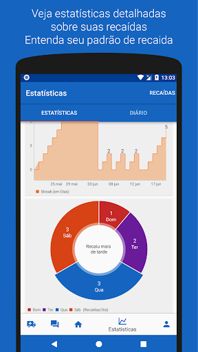 • Analise seu progresso com estatísticas avançadas sobre suas recaidas