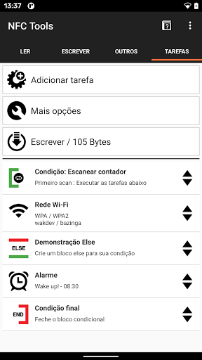 - Para executar suas tarefas, você precisa do aplicativo gratuito: NFC Tasks.