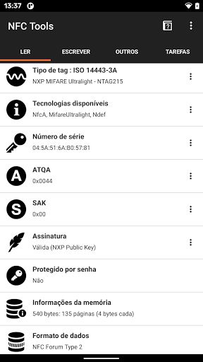 - E por último, mas não menos importante, todos os dados que a tag contém (registros NDEF)