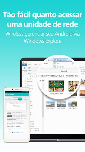 Transfira sem fios o seu conteúdo móvel entre o PC, Mac OS, nenhuma configuração complexa, nenhuma aplicação adicional necessária.