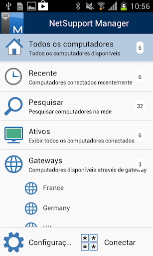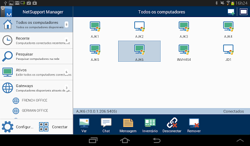 O novo Controle móvel permite que um usuário rapidamente pesquise e se conecte a computadores locais, pelo seu endereço IP ou nome do computador, ou procure, conecte-se e visualize computadores remotos usando o componente gratuito NetSupport Manager Internet Gateway.