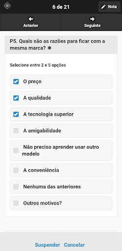 É importante notar que o nosso aplicativo foi projetado para ser aplicado por pesquisadores de campo, e não para realizar questionários auto-aplicados como as pesquisas on-line. O App também foi projetado para operar em sites afastados onde não há sinal de internet. E posivel coletar a geolocalização do ponto da amostragem, tirar fotos com a câmera do dispositivo movel, gravar parte da entrevista, coletar a assinatura do entrevistado ou do entrevistador, entre muitas outras facilidades avançadas que dão fluidez, respaldo e segurança aos dados coletados.