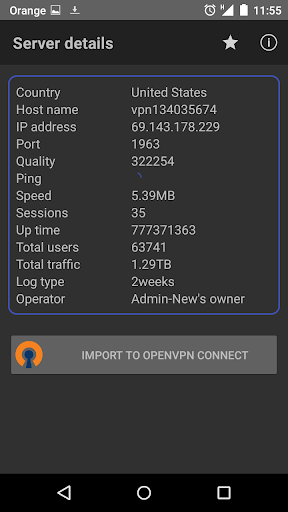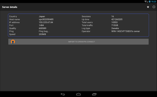 3.Clique em um servidor, a atividade de detalhes do OpenVPN será iniciada