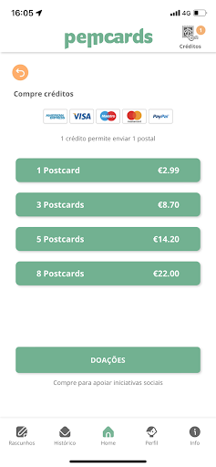 Compre créditos de envio diretamente no aplicativo ou use um código promocional.