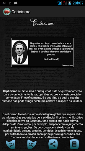 Compilação de diferente filosófico ao longo da história atual. As informações contidas neste aplicativo irá aumentar ao longo do tempo em que eles estão recebendo novas fontes. Fórum para troca de idéias.