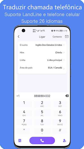 Este aplicativo suporta 119 idiomas e pode ligar para mais de 200 países.