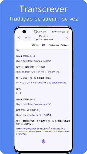 Ele fará a tradução ininterrupta em tempo real do som que ouve, e legendas bilíngües aparecerão, além de gravar e exportar scripts de legendas automaticamente.