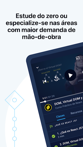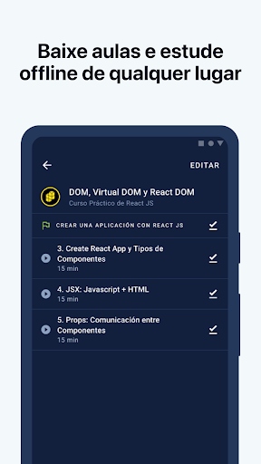 Com este aplicativo, você também poderá baixar suas aulas para estudar offline e terá acesso a conteúdo exclusivo adaptado às suas necessidades. Nossa metodologia é otimizada para que você faça melhor uso do seu tempo e possa se mover sem interromper o aprendizado.