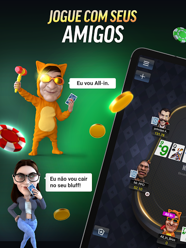 Jogue poker online com amigos em qualquer lugar e a qualquer hora. PokerBOS é um app de poker desenhado para todos os níveis de jogadores, desde iniciados no modo prática a experientes no modo de torneio. Entre Torneios Multi Mesa (MTT), Sit & Go e Mesas Abertas, sempre haverá jogos para todos. Aumente a ação com os jogos Fixed Limit e ative a nova função Kill Pot.