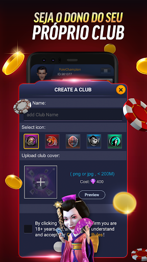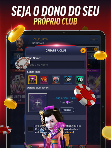 - Escolha o avatar personalizado para jogar poker