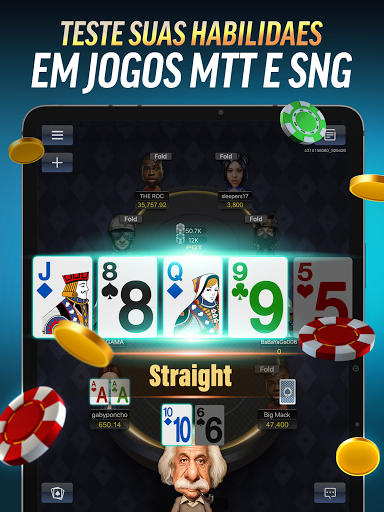 O PokerBros é indicado para qualquer jogador que queira praticar, desafiar amigos ou encontrar jogos casuais de poker. Torneios Multi Mesa (MTT) podem ter milhares de jogadores. Ganhe torneios de poker e o direito a se gabar – só pode haver um vencedor entre milhares! Faça buy-in e jogue até gastar todas as fichas. Os torneios Sit & Go (SNG) oferecem jogos rápidos de 6 à 9 pessoas na mesa. Jogue poker com os seus amigos e faça parte de uma comunidade mundial de poker.