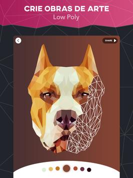 Prepare-se para uma experiência única de △ R T E com polígonos! Essa é a NOVA tendência do momento que você que gosta de colorir não pode deixar passar! Crie sua própria obra de arte em forma de um mosaico de pequenos triângulos! As imagens se transformam em obras de arte geométricas e tecnológicas!