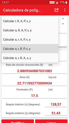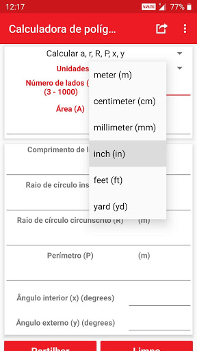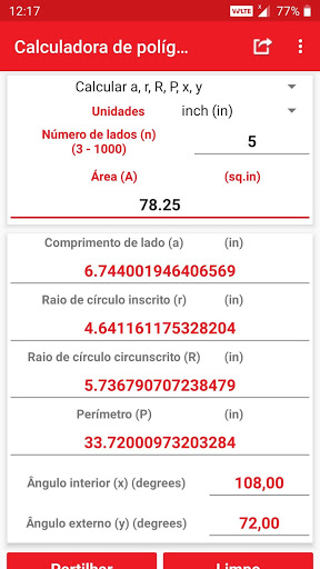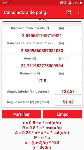Calculadora de polígono ajuda você a calcular rapidamente e facilmente parâmetros essenciais de diferentes tipos de polígono. cálculos automáticos e precisos.