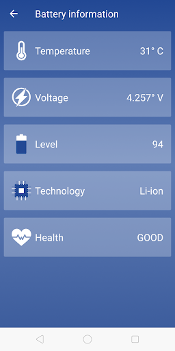 ► Battery - Battery Health is checking many feature like Temperature, Voltage, Level, Technology, Health and may more. It also can help you to increase battery life. there is one awesome feature of Fast Charge of your battery.