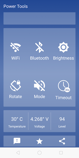 Power Tools is the Swiss Army knife for your smartphone. Packed with all the productivity tools that will increase your efficiency by facilitating your daily tasks. Let Power Tools manage your Battery Health, Wifi, Bluetooth, Brightness, Rotate, Profile Mode, Sleep Timeout and many more cool features.