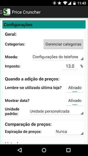 - Crie suas próprias unidades personalizadas (eg. rolos, caixas, folhas, etc.)