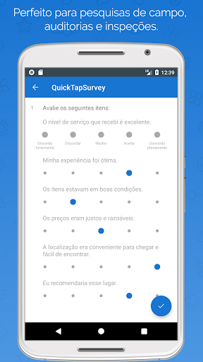 O QuickTapSurvey é uma plataforma de questionários e coleta de dados que permite que os usuários criem seus próprios questionários e coletem respostas sem uma conexão à Internet usando tablets. Ele é o aplicativo para questionários mais bem avaliado e é usado por milhares de organizações em mais de 50 países ao redor do mundo. Experimente agora DE GRAÇA!