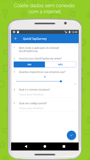 2) Baixe seu questionário para o aplicativo QuickTapSurvey no seu tablets e COLETE respostas com ou sem uma conexão à Internet.