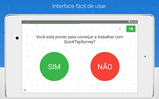 O QuickTapSurvey é extremamente fácil de usar, customizável, seguro e pode tornar seu tablets em um Quiosque. É a ferramenta perfeita pata pesquisas de campo, feedback de clientes, captura de lead em feiras e eventos, audições, inspeções, avaliações e qualquer tipo de coleta de dados.