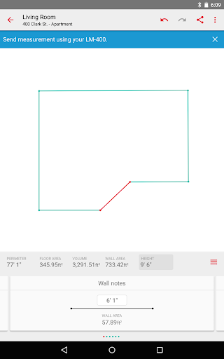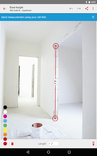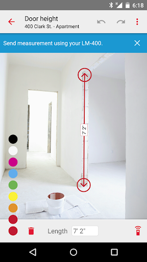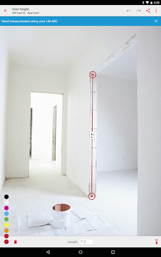 O Ridgid Sketch é uma ferramenta útil que permite calcular e comunicar várias medições em seus projetos.Pode ser usado por conta própria ou em conjunto com um medidor de distância a laser Ridgid LM-400.O aplicativo se conectará ao seu LM-400 via Bluetooth e receberá medições de distância precisas do dispositivo.O esboço Ridgid funciona tanto no modo de desenho quanto no modo de sobreposição de fotos, permitindo que você desenvolva planos de sala precisos ou anotem medições dentro de uma imagem.