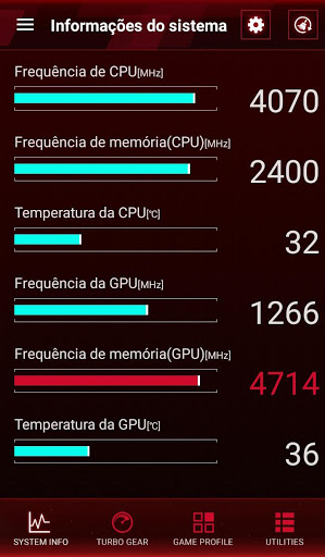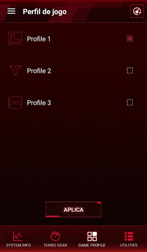 - Perfil de jogo: Aplique todas as definições da aplicação ROG com apenas um clique antes de iniciar o jogo.