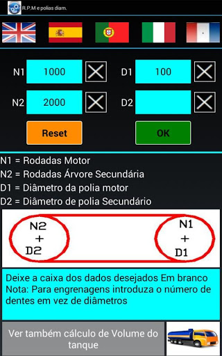 Deixe a caixa dos dados desejados Em branco Nota: Para engrenagens introduza o número de dentes em vez de diâmetros