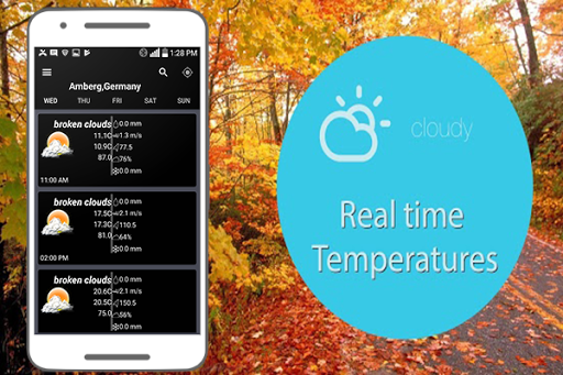 O aplicativo vem com um widget Detial Timeline na sua tela inicial e personaliza facilmente sua exibição para mostrar o clima da área de localização solicitada. Ao usar este widget legal, você não pode apenas conhecer o clima hoje de relance, mas também a outra previsão de 5 dias.