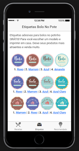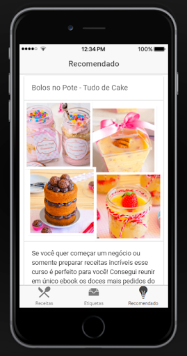 O aplicativo Receitas Bolo no Pote também tem indicações de curso e livros digitais sobre como fazer bolo de pote.