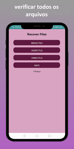O aplicativo Recuperar todos os arquivos excluídos ajudará o cliente a recuperar gravações em mp4,3gp, MP3, WAV, som, jpeg, png, GIF e todas as fotos e contatos. A melhor aplicação para Android na Play Store, baixar e recuperar informações.