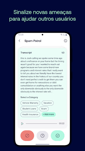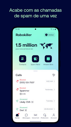 Você pode bloquear spam e operadores de telemarketing e golpes com o Robokiller: qualquer chamada indesejada ou chamada telefônica com um identificador de chamadas de spam vai ser marcada como spam com a ajuda de nossa tecnologia de bloqueio de números e impressão digital de áudio.