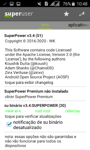 - Removido o recurso "Atualizador do su binário" (Exigência da Google Play Store!)