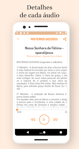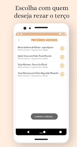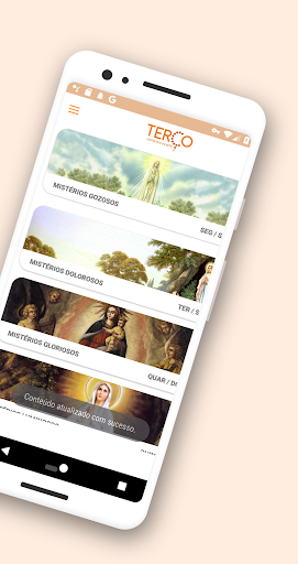 Os mistérios são automaticamente rezados no Rosário, de acordo com o dia da semana indicado no seu celular;