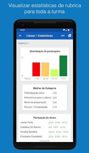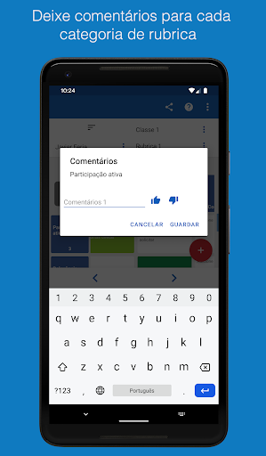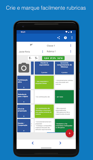 O aplicativo gratuito suporta até 3 rubricas para 1 aula.