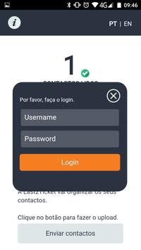 Para receber todos os seus contactos organizados, é necessário utilizar as credenciais de acesso dadas pela Last2Ticket.