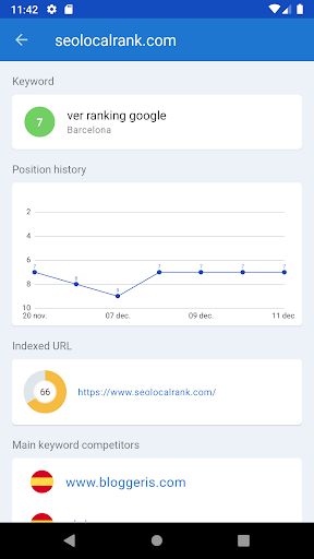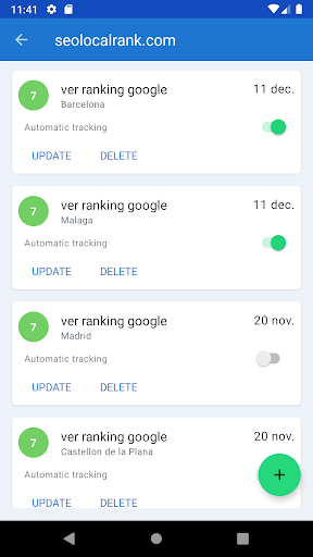 Descubra como suas palavras-chave se comportam em outras cidades. As outras ferramentas apenas fornecem informações sobre a posição global para cada palavra-chave, para que você não saiba em que posição elas aparecem em outros locais. Com SEO LOCAL RANK seu SEO dá um passo à frente e você descobre, em primeira mão, a evolução de suas palavras-chave por geolocalização em tempo real.