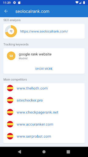Você já se perguntou em que posição se encontra seu site ao pesquisar por suas palavras-chave em Madri, Barcelona ou em qualquer outra cidade? A ferramenta SEO LOCAL RANK permite que você conheça e rastreie suas palavras-chave para que possa escolher a melhor estratégia para o seu negócio.