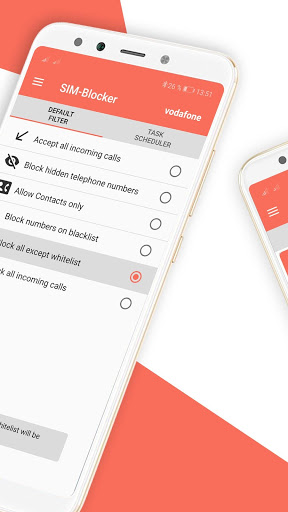 O bloqueador de SIM e o filtro de chamadas é o melhor bloqueador de chamadas da Playstore, devido à sua funcionalidade de bloqueador de chamadas dual SIM, este é o primeiro aplicativo que bloqueia chamadas Dual SIM para dispositivos Android. Se você possui um smartphone com dois cartões SIM, pode definir o modo de bloqueio para cada cartão SIM separadamente. Esta função de controle de chamadas é compatível com quase todos os dispositivos Android 7.0 e mais recentes.