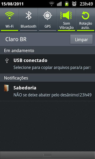 - Configure para receber uma notificação uma vez ao dia no horário desejado com uma mensagem de sabedoria.
